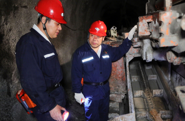 6月19日,公司總經(jīng)理張秉德到礦建處調(diào)研檢查指導(dǎo)工作,要求這個(gè)處要加強(qiáng)現(xiàn)場(chǎng)安全管理,推進(jìn)“四新”技術(shù)、“四化”設(shè)備的使用,促進(jìn)開拓進(jìn)尺能力不斷攀升。